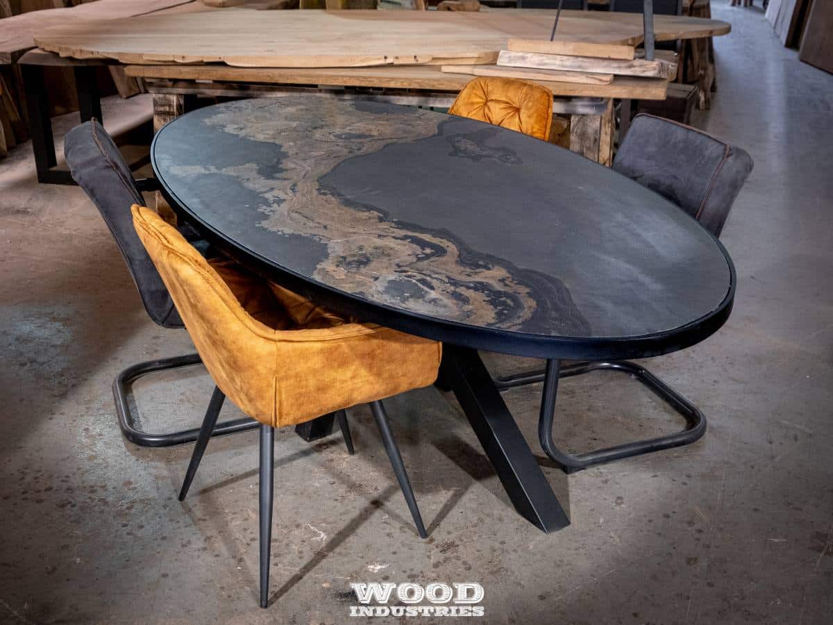 Een ovale eiken tafel kunt u in allerlei soorten bestellen bij Woodindustries. Een eiken tafel heeft grove en fijne structuren en verschillende kleuren. Wij schuren, schaven of borstelen uw eiken tafel glad of juist grof en werken de eiken tafel vervolgens zorgvuldig af met olie, (gekleurde) lak of een white- of greywash. U kunt een eiken tafel bestellen van verantwoord gekapt hout of van reclaimed eikenhout, zoals dekdelen, wagonplanken, gebinten of barnwood. Door het doorleefde uiterlijk straalt een eiken tafel historie en karakter uit. Een houten of licht metalen onderstel geeft een eiken tafel een landelijke en rustige uitstraling, een stevig metalen onderstel zorgt voor een industriële eiken tafel.